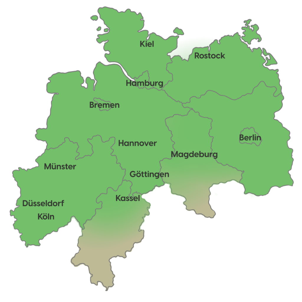 Im Herzen Hamburgs sind wir zuhause. Von hier aus betreut unser Team aus festangestellten Mitarbeiter:innen LEH-Filialen in Schleswig-Holstein, Hamburg, Bremen, Niedersachsen, Brandenburg, Berlin und in Teilen Mecklenburg-Vorpommern sowie Sachsen-Anhalt.